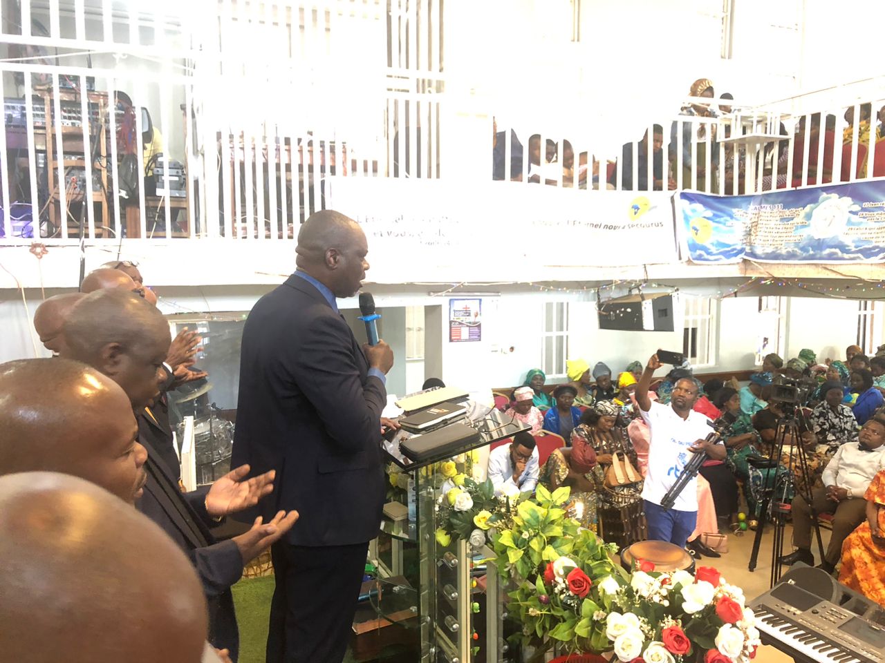 Dans les deux cultes de ce jour, d’abord dans celui swahiliphone et puis dans le culte francophone des jeunes, le vice-gouverneur de province et fidèle de la Communauté des Églises Pentecôte en Afrique Centrale (CEPAC) était le prédicateur principal.