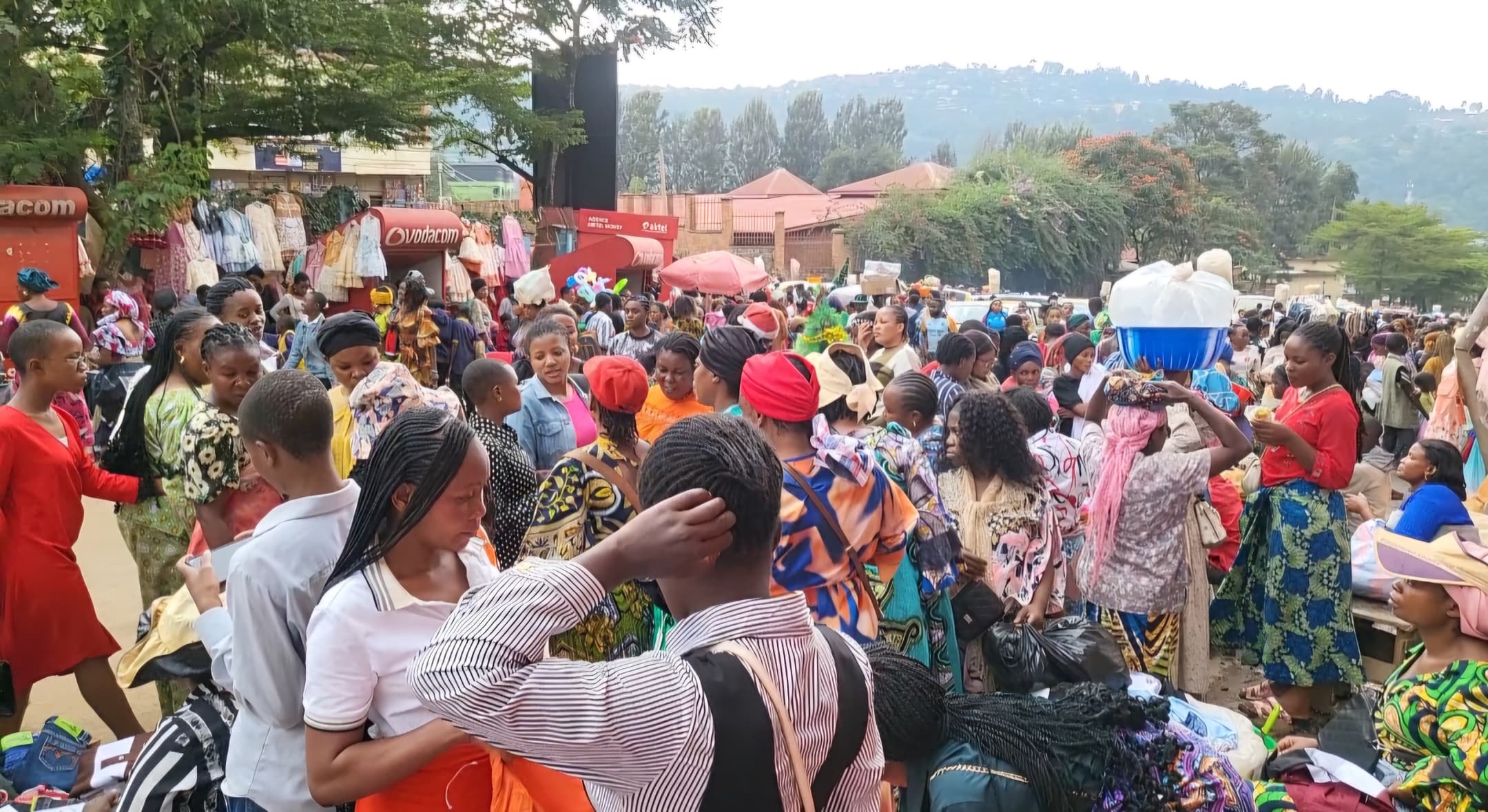 Des milliers de parents viennent acheter des habits, souliers, sapins de Noël et autres pour leurs enfants. Les marchés des denrées alimentaires sont aussi pleins de monde pour préparer ces deux grandes fêtes, entendez par là la fête de Noël et de nouvel an.