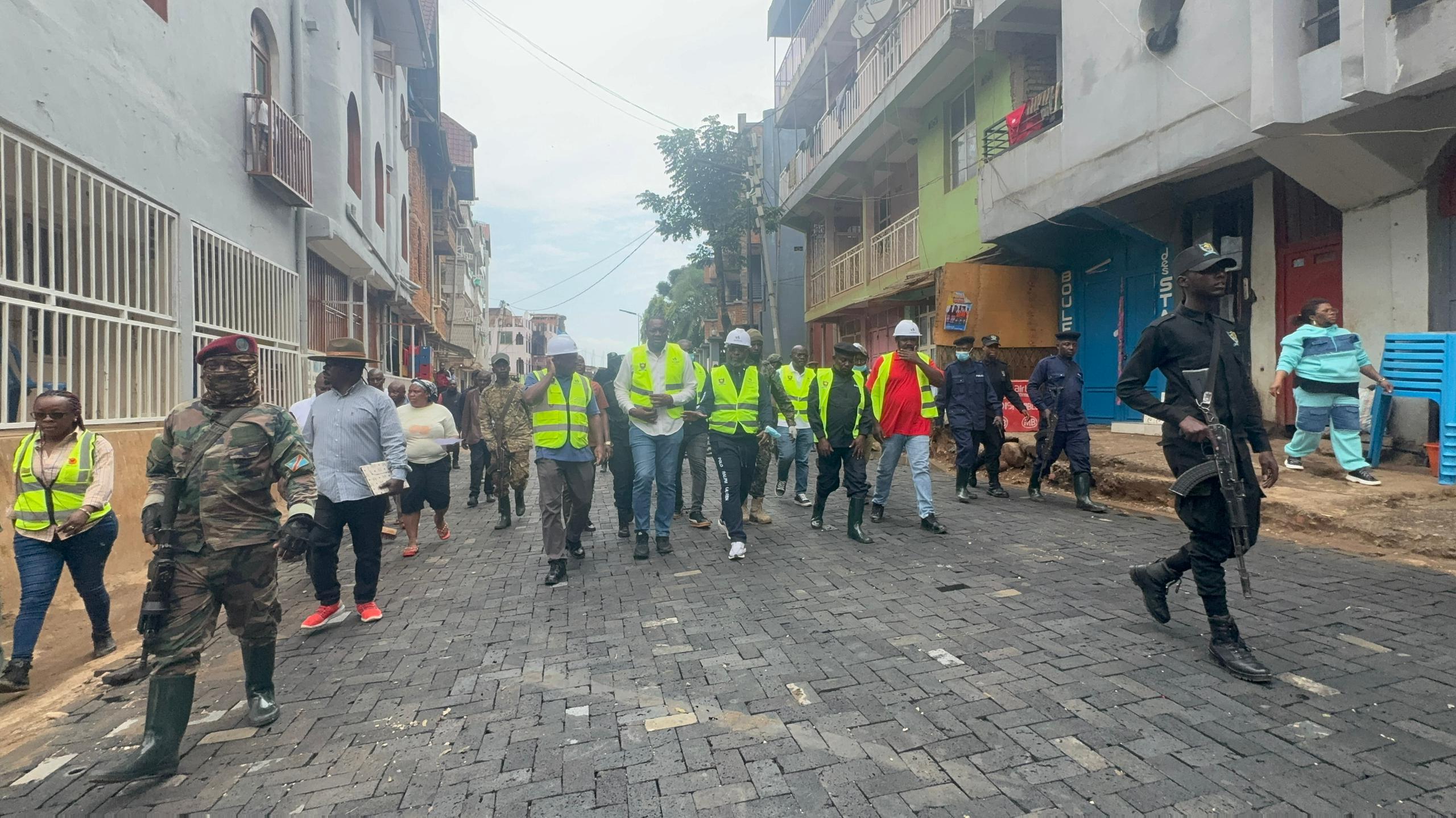 Sous la conduite du Gouverneur Patrick Nshombo Busu Bwangwi, accompagné de Lawrence Kanyuka, chef du département communication de l’AFC/M23, la délégation a parcouru des zones telles que Nguba, Nyawera, la Place de l’Indépendance, la SNCC et Panzi. L’objectif était d’évaluer l’avancement des chantiers et la mobilisation des habitants.